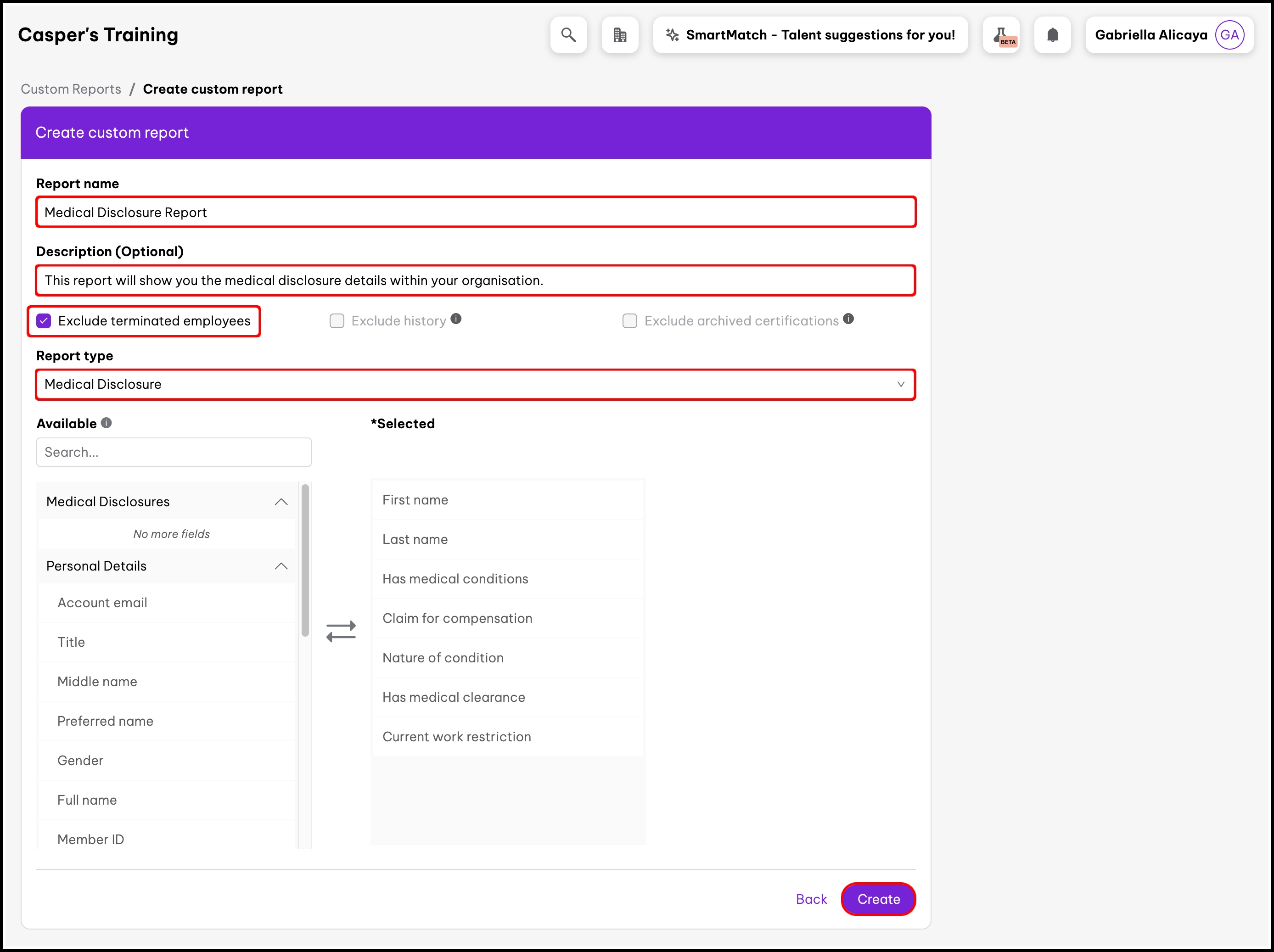 This article will walk you through how to create a medical disclosure report. Before being able to use the Custom Reports feature, you need to activate Two-Factor Authentication. To read details on how to activate Two-Factor Authentication, refer to the following article. You can use the Custom Report feature to construct a report on the medical disclosure reports completed by your employees during the onboarding workflow or edited in their personnel file.