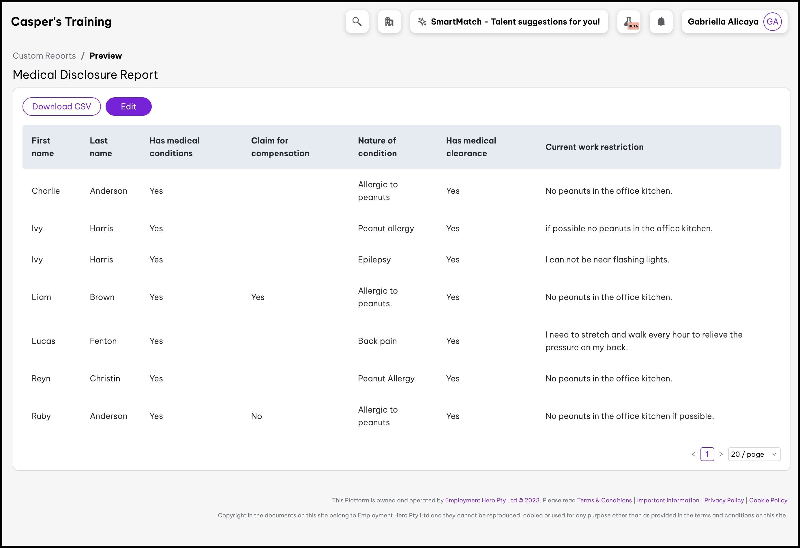 You will now see your medical disclosure report on your screen. To read more information on how to edit, download, and delete a custom report, refer to the following article.