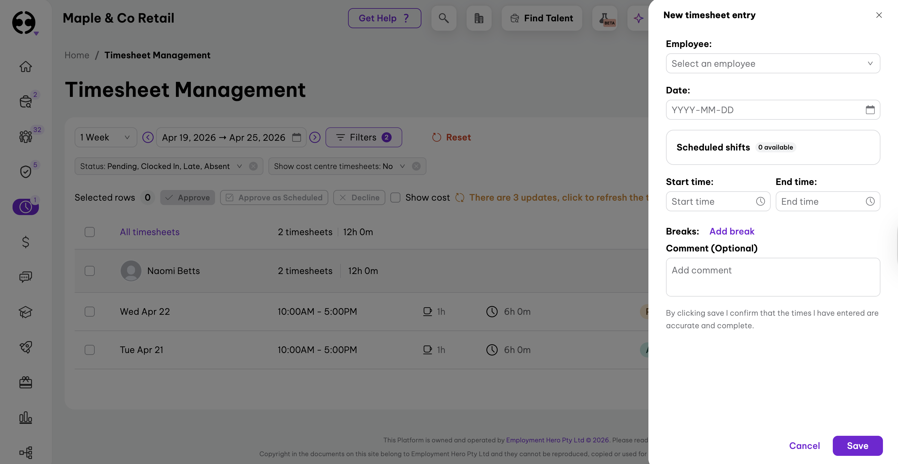- Enter the timesheet details.